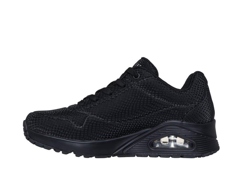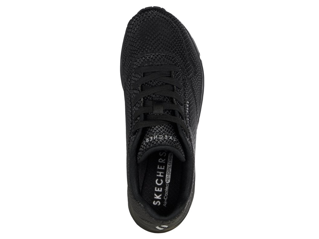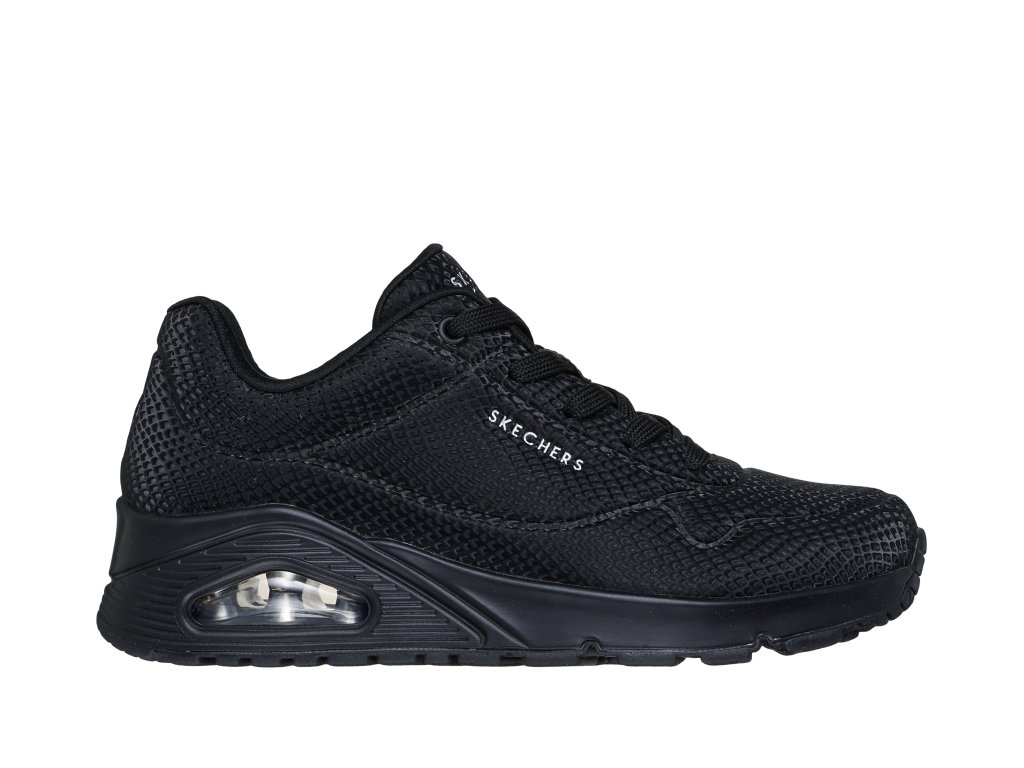 Zapůsobte na své okolí s odvážnými a jasnými botami Skechers Street™ Uno – Shiny Scale. Tenhle šněrovací módní model ve sportovním stylu má horní díl z materiálu durabuck s reflexním hadím potiskem, polstrovanou stélkou Skechers Air-Cooled Memory Foam™ a viditelnou odpruženou mezipodešví Skech-Air®.