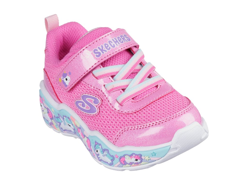 Vaše dítě se bude celý den usmívat v botách Skechers Play Scene – Fun Squad. Tyto roztomilé tenisky mají horní díl ze síťoviny s třpytivými potahy, strečové tkaničky a zapínání Adaptive Closure, a dobře polstrovanou mezipodešev s hravými tematickými grafikami.