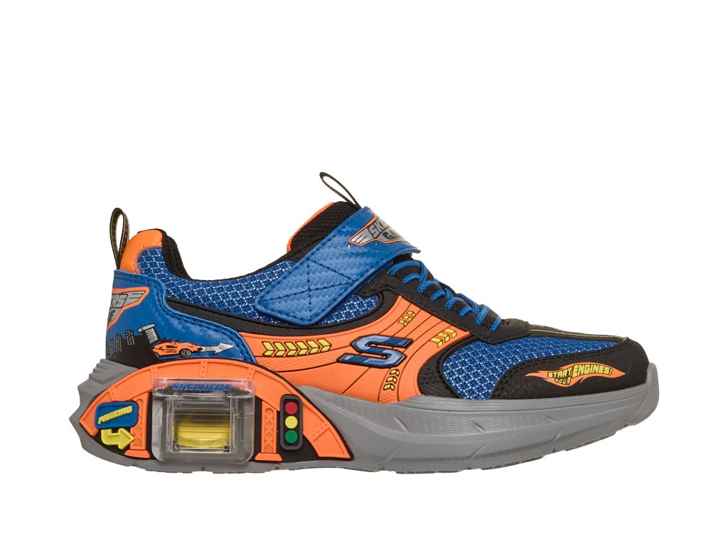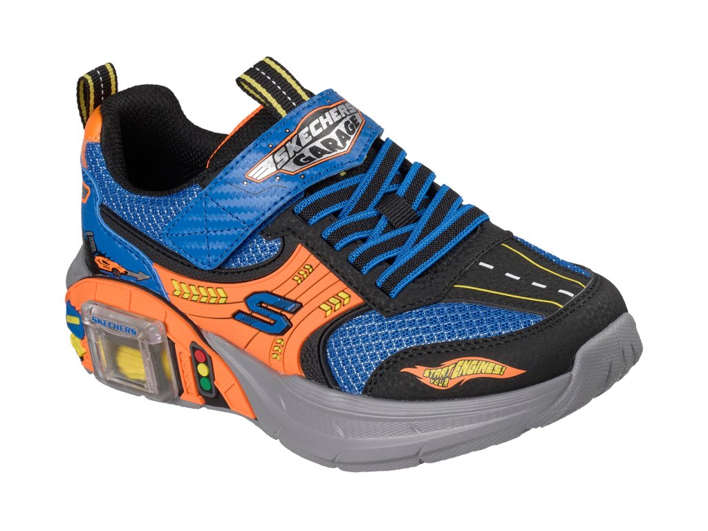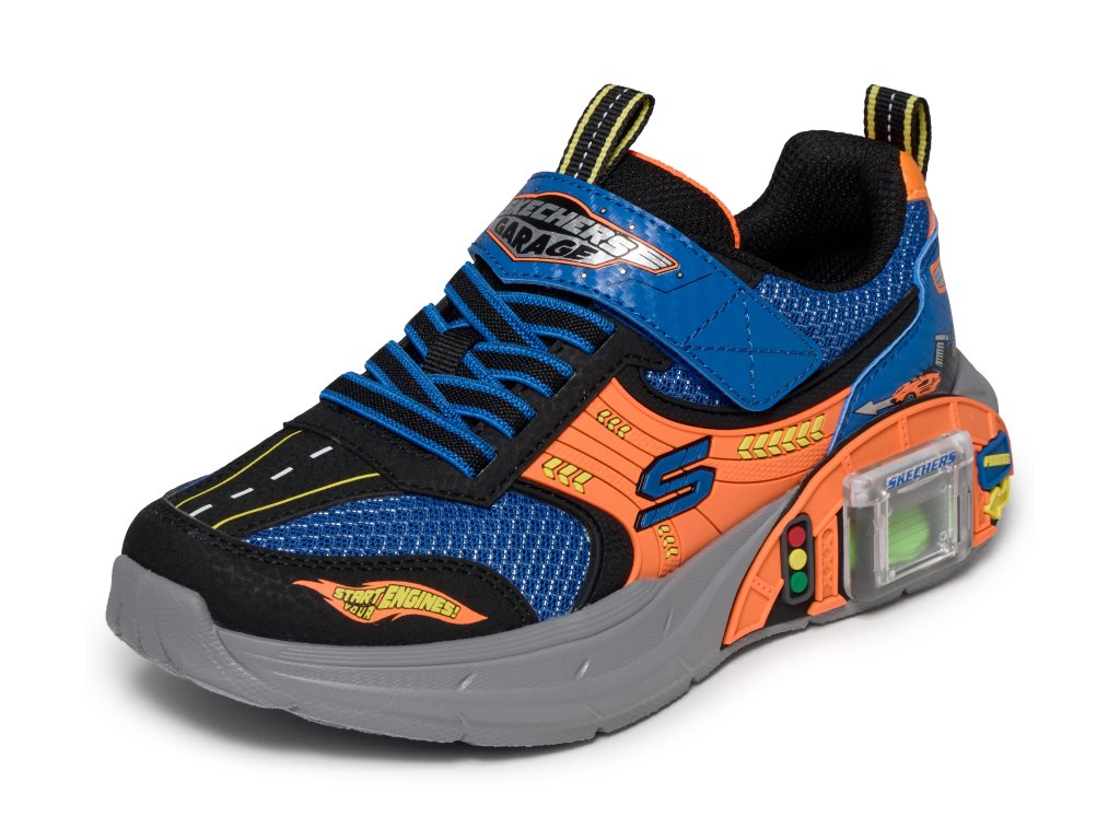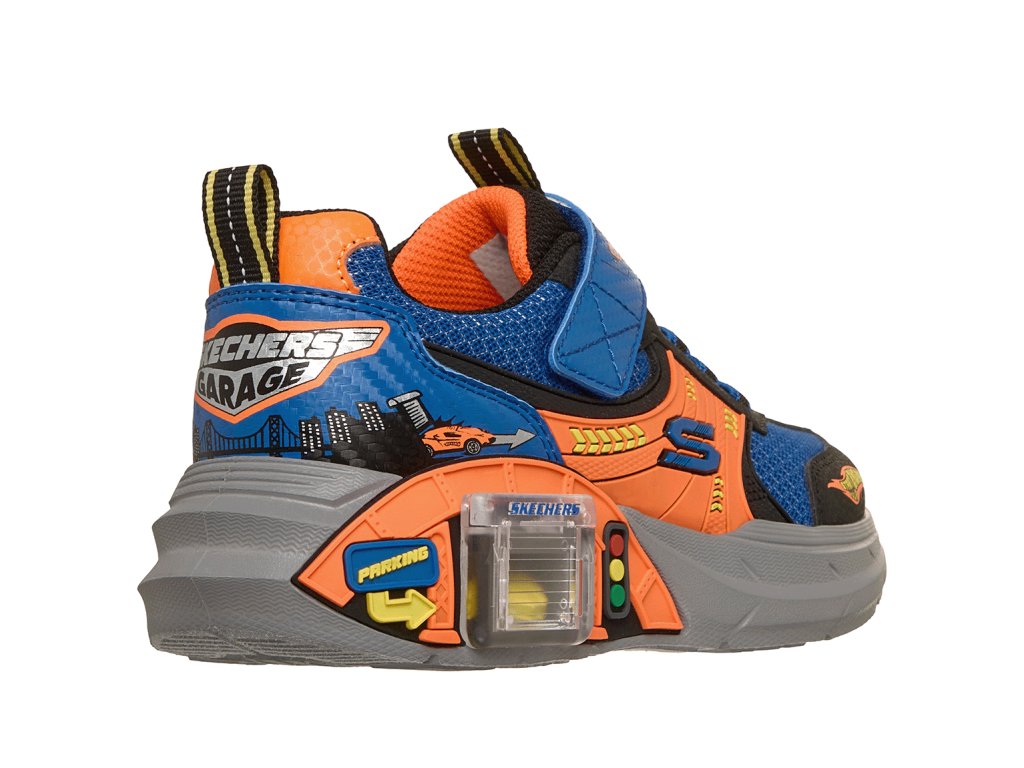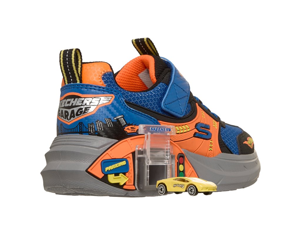 Nastartujte motory a užijte si spoustu zábavy v botě Skechers Garage! Tato lehká teniska Skechers s adaptivním zapínáním má svršek ze síťoviny a syntetických materiálů s poutavou grafikou s motivem aut, pevné elastické tkaničky a nastavitelný pásek na nártu. Hravý design je doplněn posuvnou garáží na mezipodešvi a obsahuje dvě autíčka, která lze uložit dovnitř!